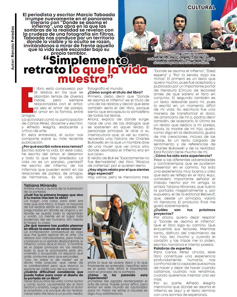 Marcio Taboada presenta Donde se asoma el infierno, una serie de relatos llenas de amor, obsesión, lujuria en la que rompe todo esquema romántico